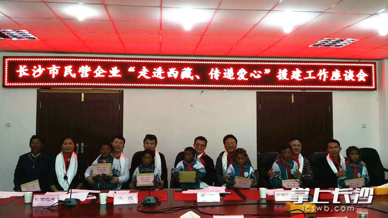 长沙市赴藏考察团在贡嘎县召开长沙市民营企业“走进贡嘎 传递爱心”援助工作座谈会,会议由县政协主席扎西巴珠主持,会上,中共长沙市委副秘书长、贡嘎县委常务副书记洪健同志汇报了贡嘎县及援藏工作有关情况,贡嘎县工商联主席巴桑汇报了贡嘎县工商联工作开展情况,扎西巴珠主席介绍了贡嘎县政协工作。 长沙和贡嘎双方将组织更多企业互动,进行投资贸易洽谈,在长培训贡嘎企业家,合作开展"湘品入藏、藏品入长"等系列活动。随后,长沙市工商联向贡嘎县海拔最高的东拉乡广嘎村中心校捐赠了10万元的生活用车款,彭继球主席等7人与贡嘎县东拉乡广嘎村中心校的7名特困师生进行了"一帮一"结对帮扶,促进"汉藏一家亲",每人送去了爱心生活款2000元。