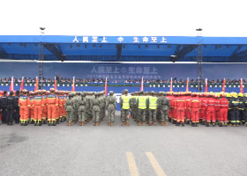 随着总指挥一声令下,演练正式拉开序幕。公安部门、交警部门在事发区域周边设置警戒线,封锁交通,对周围群众进行疏散。同时,消防部门、120急救车奔赴事故现场,对伤员进行救治。