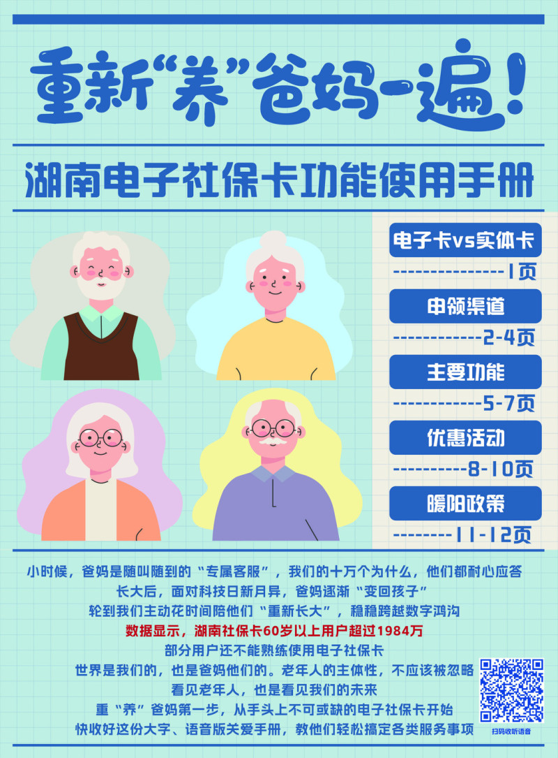数据显示,湖南社保卡60岁以上老年用户超过1984万;签发电子社保卡4024.52万张,较“十四五”初期增长168.8%。这份看得见、听得懂、学得会的手册,是省人社部门面向他们创新推出的适老化举措。