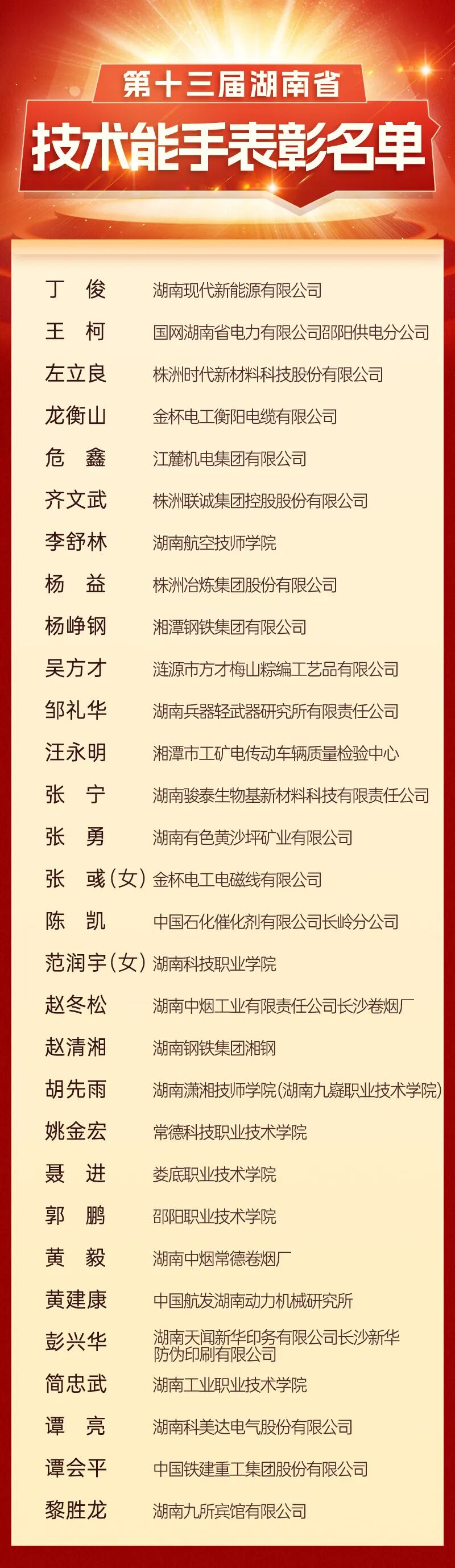 湖南表彰一批优秀专家、技能大师、技术能手及乡村车间优秀企业家