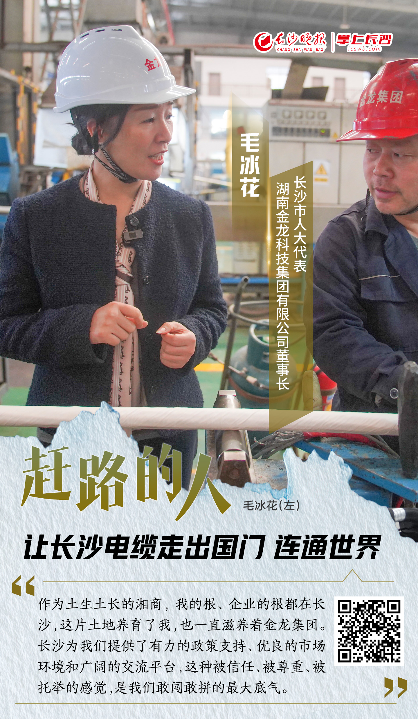 “学成,就是为了归国。”毛冰花坦言,这份坚定,源于家族深耕实业的初心。20世纪90年代,父亲毛炯明收购濒临破产的原国营长沙马栏山电线电缆厂,更名为“金龙电缆厂”。在毛炯明的打拼下,金龙电缆厂从一家改制小厂成长为集研发、生产、销售于一体的创新型现代制造企业,跻身全国民营企业500强和中国制造业500强。如今,这份沉甸甸的接力棒传到了毛冰花手中。“作为长女,我必须挑起这份重担。”毛冰花说。