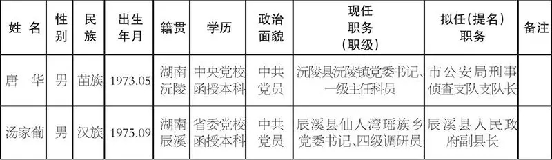 为了加强对干部选拔工作的监督,提高识别和任用干部的准确程度,现对怀化市委常委会议研究决定的下列2名拟任职人选(提名人选)进行任前公示。