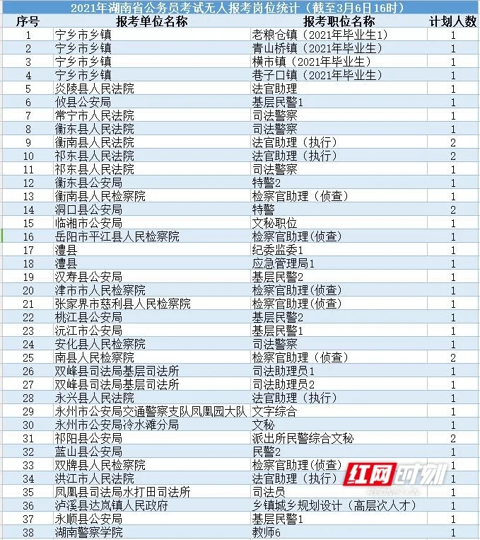 最后1天!抓紧报名!湖南省考还有这些岗位无人报考