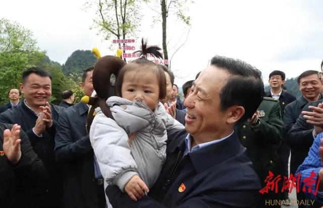 今天,省委理论学习中心组到湘西州开展党史学习教育第二次专题学习。在十八洞村,记者定格了这样一张照片。照片上,被省委书记、省人大常委会主任许达哲抱在怀里的小女孩名叫龙思恩。