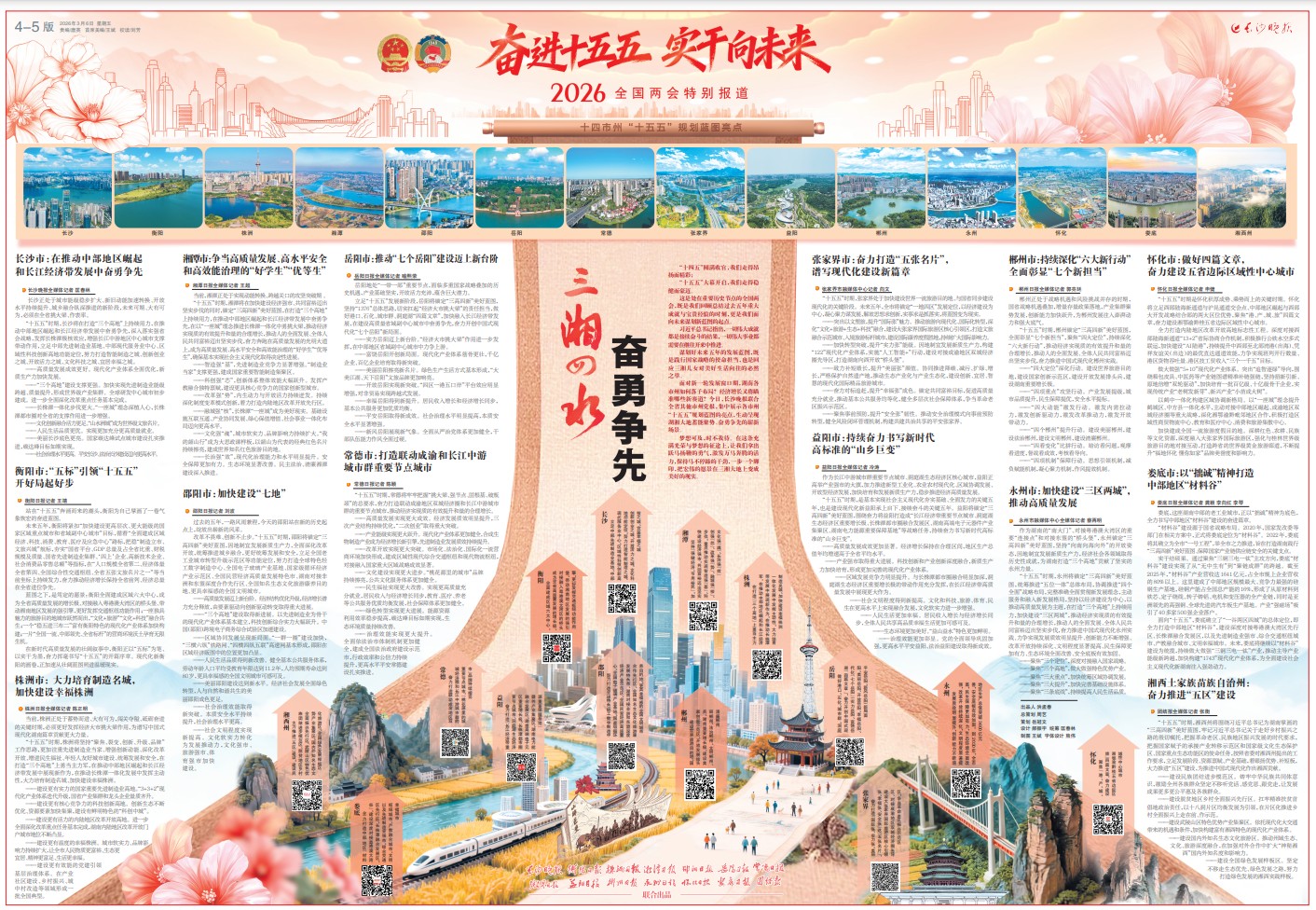 面对新一轮发展窗口期,湖南各市州如何落子布局?经济增长又将瞄准哪些新赛道?今日,长沙晚报联合全省其他市州党报,集中展示各市州“十五五”规划蓝图的亮点,生动呈现湖湘大地蓄能聚势、奋勇争先的崭新场景。