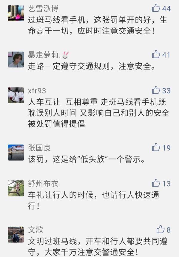 “过斑马线玩手机看不到来往车辆很危险,同时走路慢吞吞妨碍交通。罚不是目的,而是希望引起行人的重视,达到文明、安全通过斑马线。”交警介绍。
