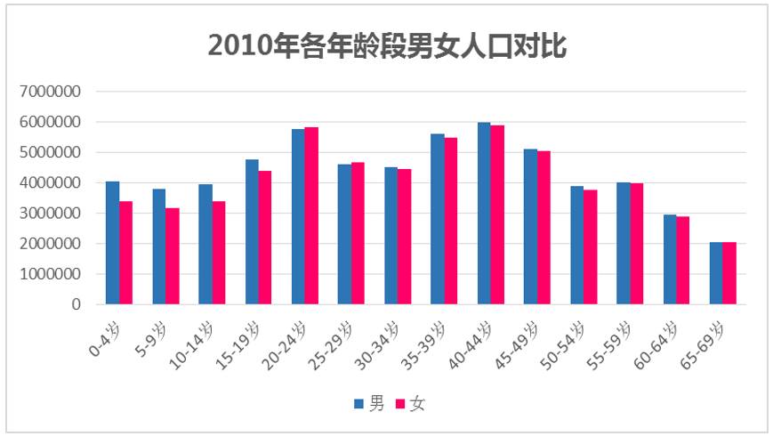 DT君通过第六次人口普查数据算了下各年龄段的男女比例。如果你是70后或者80后,还算比较幸运,男女凑合数量差不离。