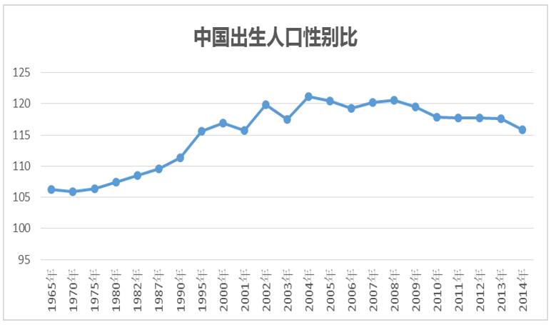 一般来说,出生人口的性别比(每出生百名女婴相对的出生男婴数)正常范围为103-107,这样正常生长到了婚配的年龄后男女数量能大体相当。