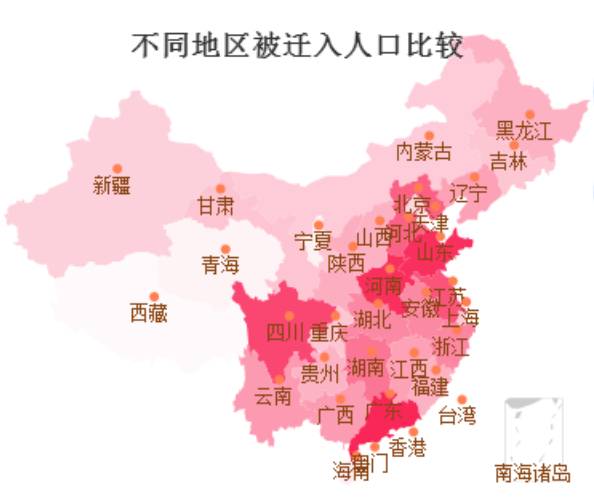 如果将人口迁入热力地图与未婚率地图进行比较,发现深浅区域是大致互补的。