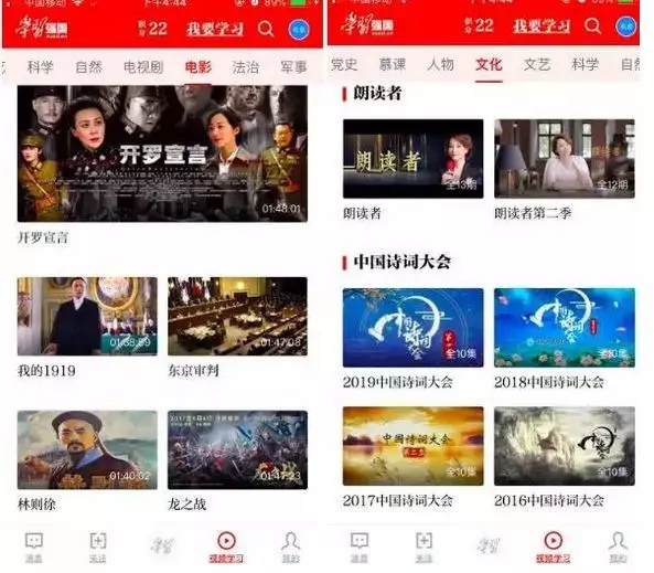 作为国家亲自领头做的产品,强国App有一个得天独厚的优势——广泛且精致的视频内容。你会发现在视频学习栏目里,从中央政策到时政要闻,从人文科学到法治军事,从诗词古籍到传统文化,甚至短视频、慕课课程、电视剧、电影等等都囊括其中。有许多央视制作精良的节目,以及在别的平台并不好找到的电视剧、电影资源。