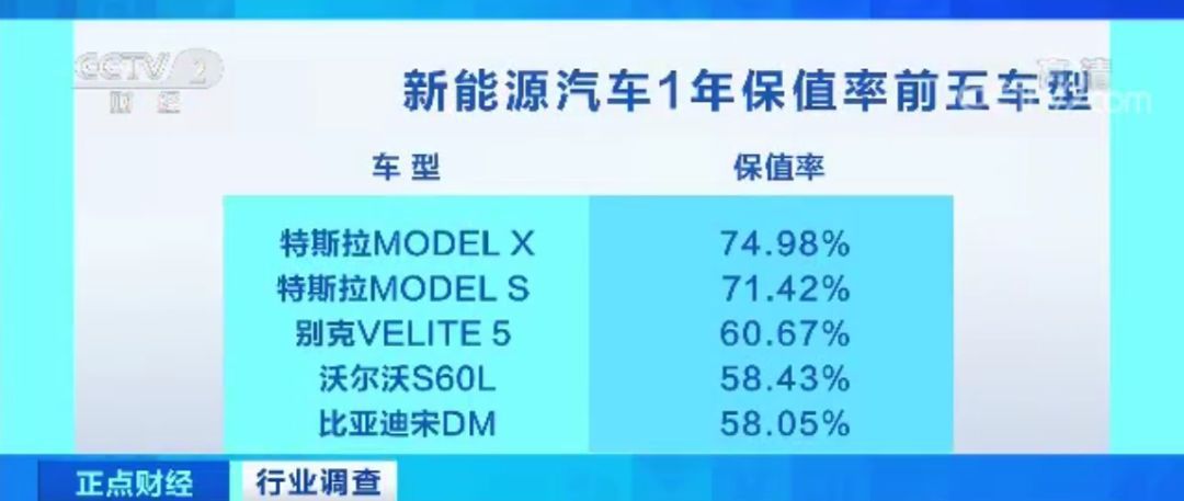 除了销量不大,保值率低是新能源二手车的另一个特点。中国汽车金融暨保值率研究委员会发布的《2019中国汽车保值率报告》显示,从新能源汽车的1年保值率情况来看,排在前五位的是特斯拉MODEL X、特斯拉MODEL S、别克VELITE 5、沃尔沃S60L和比亚迪宋DM,保值率分别为74.98%、71.42%、60.67%、58.43%、58.05%。除了特斯拉能保持在70%以上,其余车型的保值率普遍偏低,开上一年基本就打了六折。