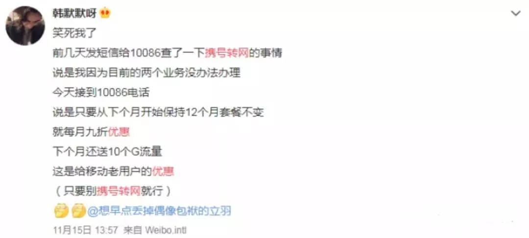 结果运营商竟给我发优惠短信了。”