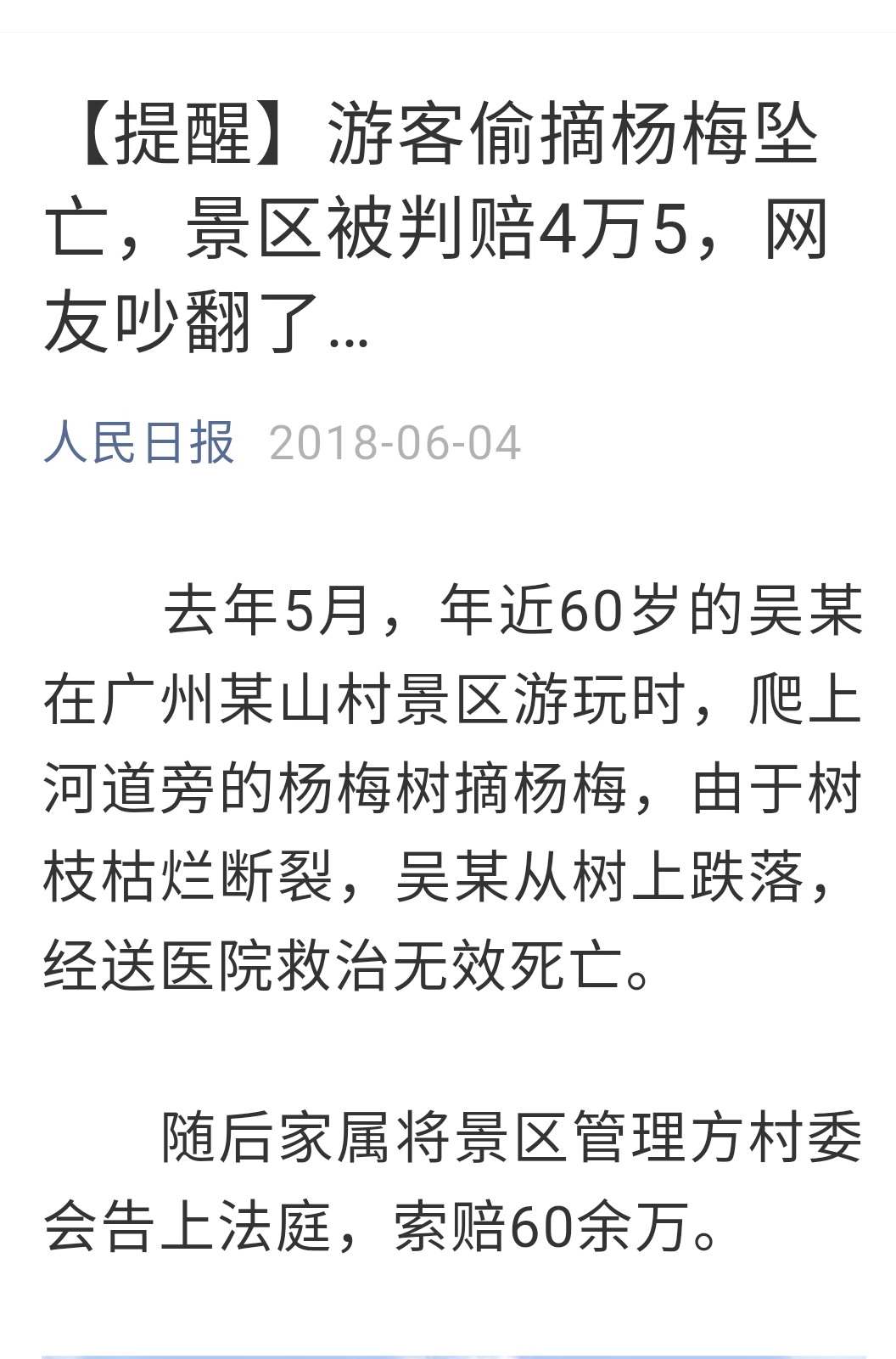广州“游客偷摘杨梅坠亡案”改判,景区无责!