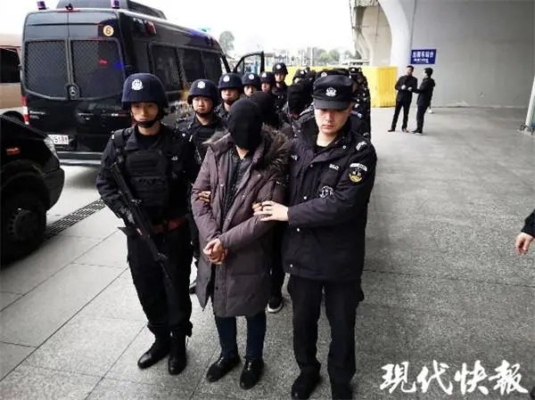 △ 警方将部分犯罪嫌疑人押解回扬州