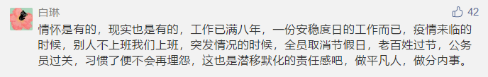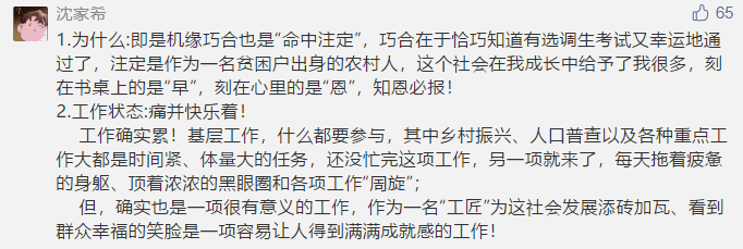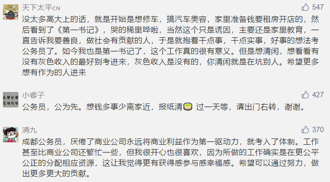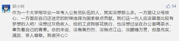 也有网友表示,当初为了稳定而考公务员,后来发现了这份工作更多的意义。