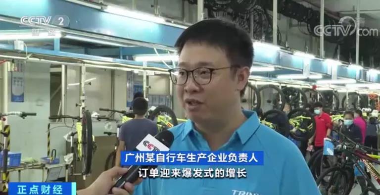 广州某自行车生产企业负责人:订单迎来爆发式的增长,我们企业订单已经排到下一年的七八月,满负荷的运作状态,甚至一部分订单已经排到了明年11 、12月。
