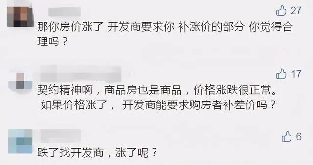 如果合同条款里没有对房价变化进行约定,那这就是房价随市场的变化而变化,属于商业风险,购房者应当自行承担。
