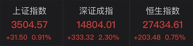 1月4日早盘,A股三大股指集体高开。创业板指在开盘后持续走高,突破3000点大关,创5年半新高。沪指站上3500点关口,为2018年1月以来首次。截至午间收盘,沪指涨0.91%,报收3504.57点;深成指涨2.30%,报收14804.01点;创业板指涨3.67%,报收3075.21点。沪深两市半日成交额突破7000亿元。