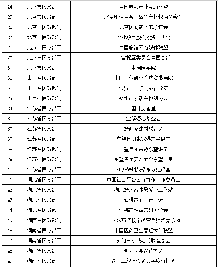 长沙晚报掌上长沙5月19日讯 据民政部网站消息 为持续加大舆论宣传力度,提高公众防范意识,发挥社会监督作用,现向社会公布第三批地方民政部门近年来依法取缔的部分非法社会组织名单。社会公众如果发现名单中的非法社会组织仍在开展活动的,可依法向公安机关报案。同时,提醒有关机构和社会公众,在与社会组织开展合作或参与其活动时,请通过“中国社会组织政务服务平台”(www.chinanpo.gov.cn)、“中国社会组织动态”政务微信(微信号:chinanpogov)核实其身份,避免上当受骗;也欢迎社会各界通过“中国社会组织政务服务平台”提供涉嫌非法社会组织活动线索。