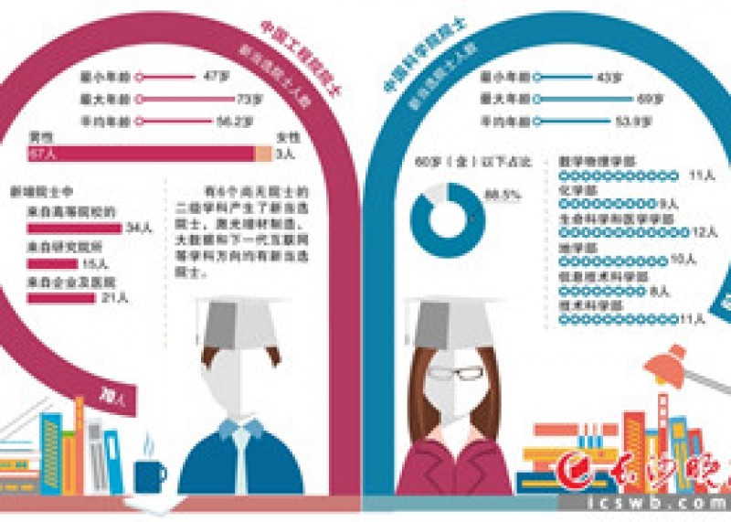 新当选的中国科学院院士平均年龄57.2岁,最小年龄44岁,最大年龄66岁,60岁(含)以下的占67.1%,女性科学家有5人当选。新当选的中国工程院院士中,有6位扎根西部边远地区的专家,有8位女性科学家。