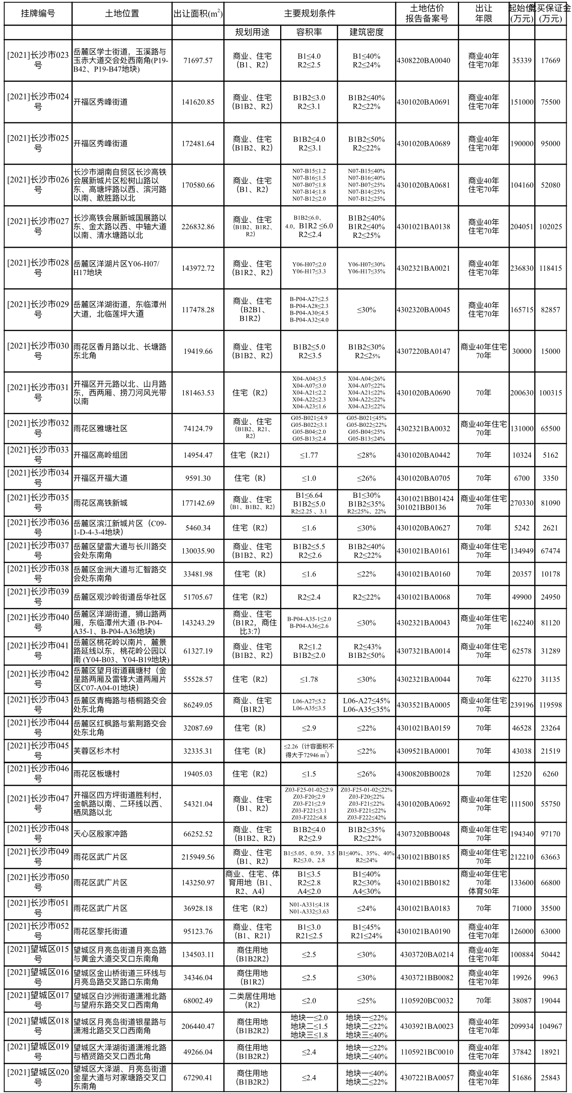 市自然资源规划局相关负责人介绍,这些出让地块中有23宗地是采用“限房价、限地价、加摇号”方式出让,绝大部分房价地价限价都较低,有13宗地配建了租赁住房,有4宗地采取竞自持租赁住房方式出让,此举将进一步强化对房地产用地储备供应的市级统筹,推进土地资源要素市场化配置,发挥供应计划对土地资源有效配置的指导作用,为长沙践行“三高四新”战略,实现“十四五”时期开好局、起好步,推进长株潭一体化,当好“领头雁”,建好示范区,加快建设现代化新长沙提供土地要素保障。
