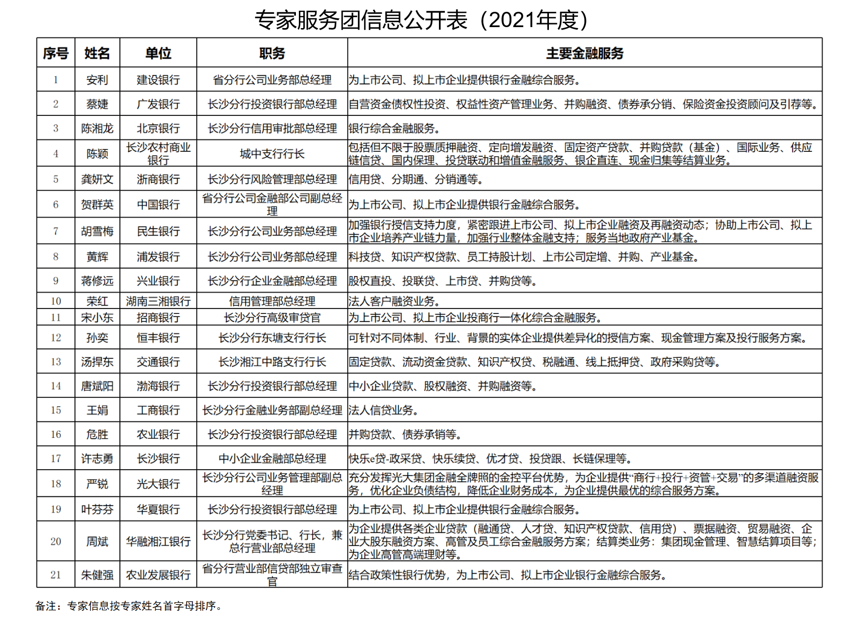 经过层层筛选,首批21位符合条件的银行机构“大咖”成功入选,我省首个企业上市(挂牌)银行机构专家服务团在长沙实力“成团”。