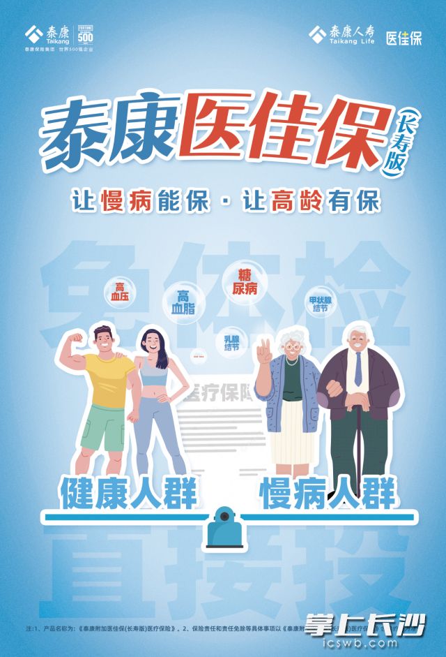 长沙晚报掌上长沙12月30日讯(通讯员 王志平)为响应国家加强高龄老年人保险保障的号召,泰康人寿近日创新推出医佳保(长寿版)医疗保险,让慢病、高龄人群也可以拥有充足的医疗保障。该产品是针对老年人群和慢病人群的保证续保“百万医疗”,保证续保三年,首次最高投保年龄提高至79周岁,190种常见慢病符合条件可保。