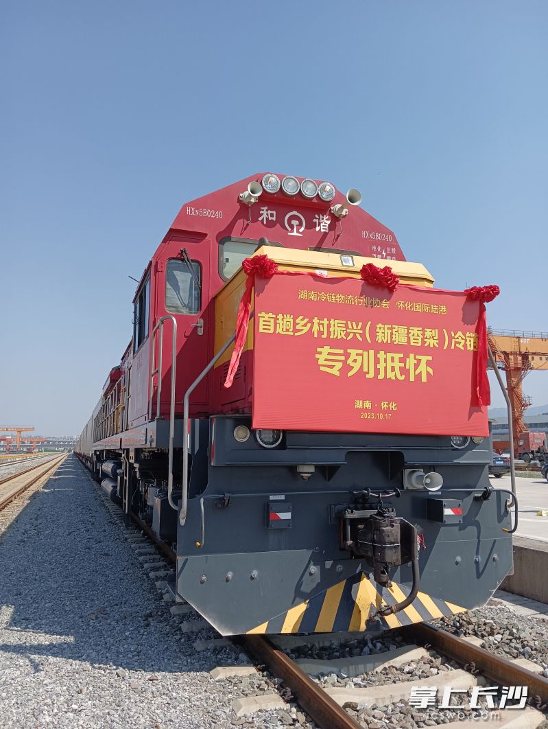 长沙晚报掌上长沙10月17日讯(全媒体记者 吴鑫矾 通讯员 梁晶进 张新林)17日,装运21只库尔勒香梨冷链集装箱的24431次货运专列缓缓驶入广铁集团怀化西站,全列在30分钟内完成卸货,1小时内完成转运进库冷藏。这标志着从新疆库车站始发、行程3900多公里、运行时长5天的首趟“新品入湘”铁路冷链集装箱专列顺利抵湘,湖南铁路开辟了一条全新的冷链货运通道。