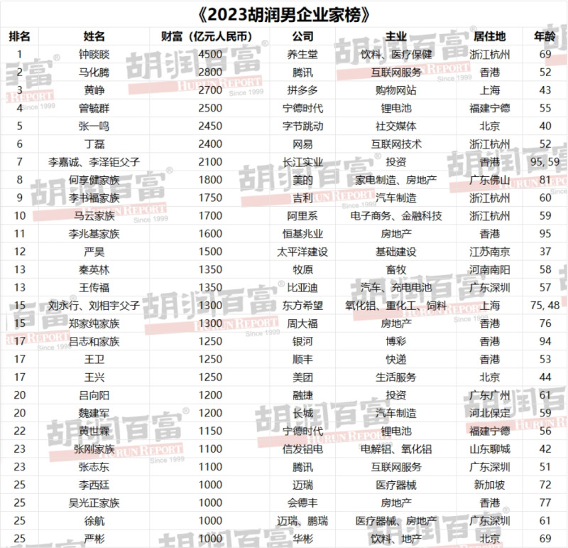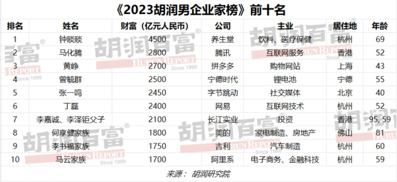 长沙晚报掌上长沙12月12日讯(全媒体记者 舒元臻)继11月14日第18次发布“胡润女企业家榜”之后,今日,胡润研究院发布“2023胡润男企业家榜”,这是胡润研究院首次发布“男企业家榜”,列出了今年胡润百富榜中的前50名男性企业家。值得注意的是,与胡润百富榜总榜不同,男/女企业家榜单独计算能够从家族财富中剥离出的男性/女性企业家个人财富。