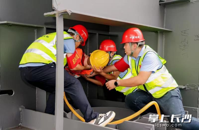 长沙晚报掌上长沙6月29日讯(全媒体记者 陈焕明)高处坠落、沟槽坍塌、有限空间作业缺氧……这些都是建筑工地容易发生的安全事故,类似事故应该如何开展应急救援?6月28日,长沙高铁西站产业新城一期工程PPP项目举行综合应急演练活动,通过模拟真实场景下的紧急救援,强化人员应急响应机制和员工的安全防范意识。