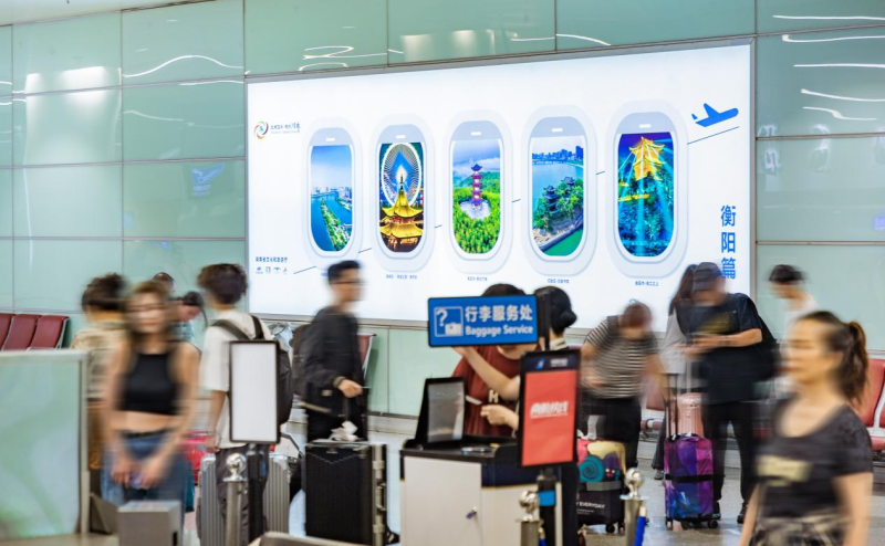 在旅发大会期间,湖南机场还利用自身资源,发挥“湖南客厅”优势,在省内十家机场航站楼17块数字大屏,进行省内景点以及旅发大会的宣传投放,并集合省内十四市州文旅名片,打造机场百米山水画廊,用行动践行“民航+旅游”创新融合、“一体化”发展的新理念,构筑湖南航旅融合资源共享新模式。