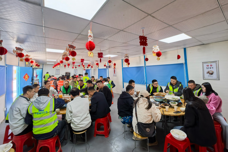 红灯笼、福字、对联……项目部虽然紧张忙碌,也随处可见喜气洋洋的年味。“项目部为大家送上了春节问候和慰问物资,准备了丰盛的年夜饭。”建设者纷纷表示,在异乡坚守岗位,同样能感受到家一般的温暖。