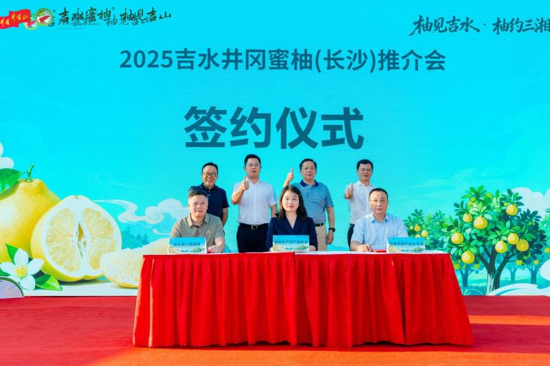 在全场嘉宾见证下,吉水县人民政府代表与湖南省农产品产销协会、红星农副产品大市场代表签订农产品产销合作协议,三方将在农产品产销领域建立起长期稳定的合作关系,为吉水井冈蜜柚在湖南的市场推广提供有力保障。随后,吉水县两山农鲜供应链服务有限公司与长沙采购方代表签订产销订单合作协议,各方将整合资源、打通渠道,实现优势互补、互利共赢。