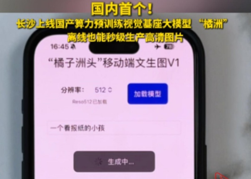 顾善植介绍,与V1版本相比,“橘洲”V1.5端侧版有多项技术升级:一是跨平台突破,由原iOS端扩展至安卓端,实现“跨系统、全终端”部署;二是硬件深度优化,完成NPU调用路径适配,攻克算力与功耗平衡难题;三是智能内容安全升级,通过提示词智能优化系统,结合多模态内容审核算法,可离线过滤输入并优化提示逻辑,提升内容合规与生成精准度;四是生成速度与能效比领先,在骁龙8 Gen 5 Elite机型上实现1024×1024图像5秒生成。