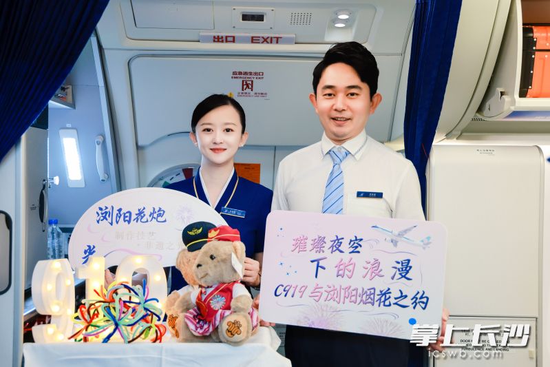 长沙晚报掌上长沙10月21日讯 (全媒体记者 吴鑫矾 通讯员 宁慧玉 蔡娟 曹弋远)10月24日至25日,第十七届浏阳花炮文化节将举行。近日,由南航湖南分公司打造的“木棉湘遇 云端匠心”主题航班精彩启航,这趟由C919执飞的长沙至北京CZ3147航班,将国产大飞机与千年非遗瑰宝——浏阳花炮制作技艺巧妙融合,在万米云端搭建起一个独具特色的“空中文化客厅”。