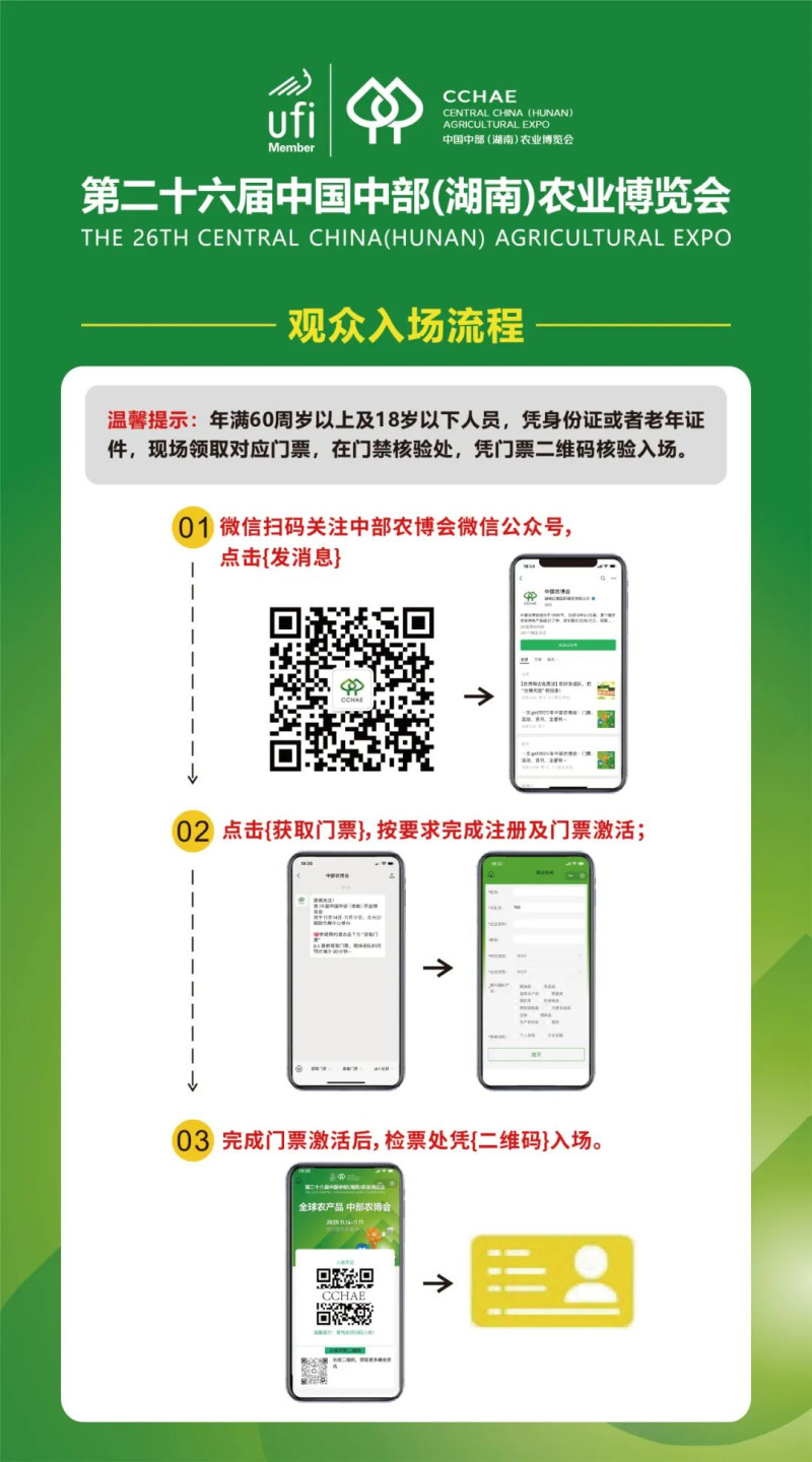 长沙晚报掌上长沙11月13日讯(通讯员徐磊)这个周末去哪里?一年一度的中国中部(湖南)农业博览会来啦!欢迎市民朋友于11月14日至17日到长沙国际会展中心“逛吃逛吃”。逛展看展门票免费,扫描“中部农博会”公众号二维码点击“获取门票”完成注册后,激活门票码,现场通过闸机扫码入场。