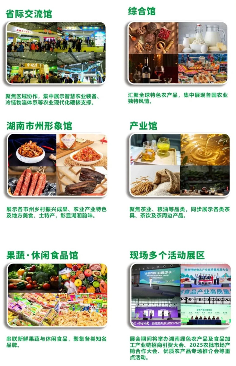 今年特邀天津市作为主题市,并吸引了四川、吉林、海南等16个省(区、市)组团参展,展品覆盖农业全产业链。展会特邀老挝、南非担任主宾国,吸引澳大利亚、法国、泰国、马来西亚等十余个国家和地区的客商参展采购。专设的国际交流展区将集中展示东南亚果香、非洲风味、欧洲醇酿与中东珍品。展会期间还将举办湖南绿色农产品及食品加工产业链招商引资大会、2025农批市场产销合作大会、优质农产品专场推介会等重点活动,积极推动务实合作。