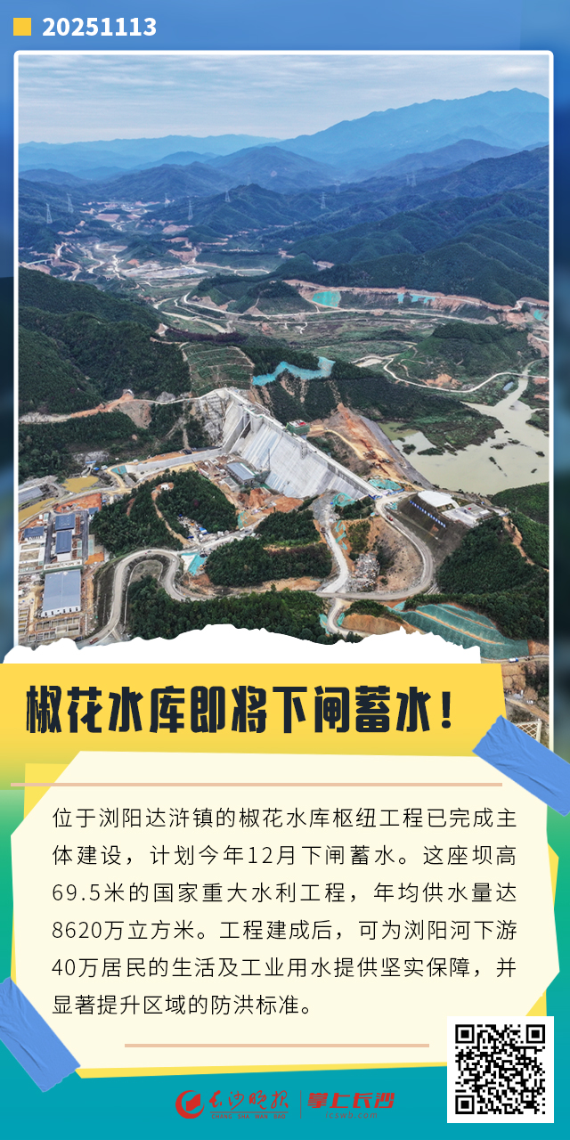 椒花水库枢纽工程是国家重大水利工程项目、湖南省重点建设项目。工程建成后,年均供水量将达8620万立方米,以城镇供水、防洪为主,兼顾灌溉和下游生态环境补水,可为浏阳河下游40万居民的生活用水和工业用水提供坚实保障。