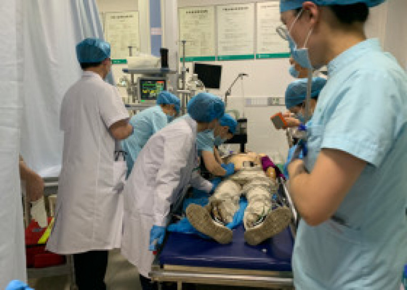 7月7日下午3时左右,64岁的游先生陪同家人在长沙市第一医院做CT检查时,突然出现呼吸困难、面色发青现象,随即呕吐、小便失禁,神志出现障碍,情况十分危急。放射科医生第一时间判断患者出现心跳呼吸停止,立即予以心肺复苏,并迅速启动胸痛中心绿色通道,紧急联系急诊科。急诊科副主任左骑和护士汤且带着抢救物品飞奔赶到现场,接续为游先生进行胸外心脏按压,开放气道进行简易呼吸囊辅助呼吸。很快医务科科长陈东、放射科主任喻奇志也加入到抢救队伍,在持续不间断的心肺复苏救治措施支持下,游先生被快速、平稳地转运至急诊科抢救室。