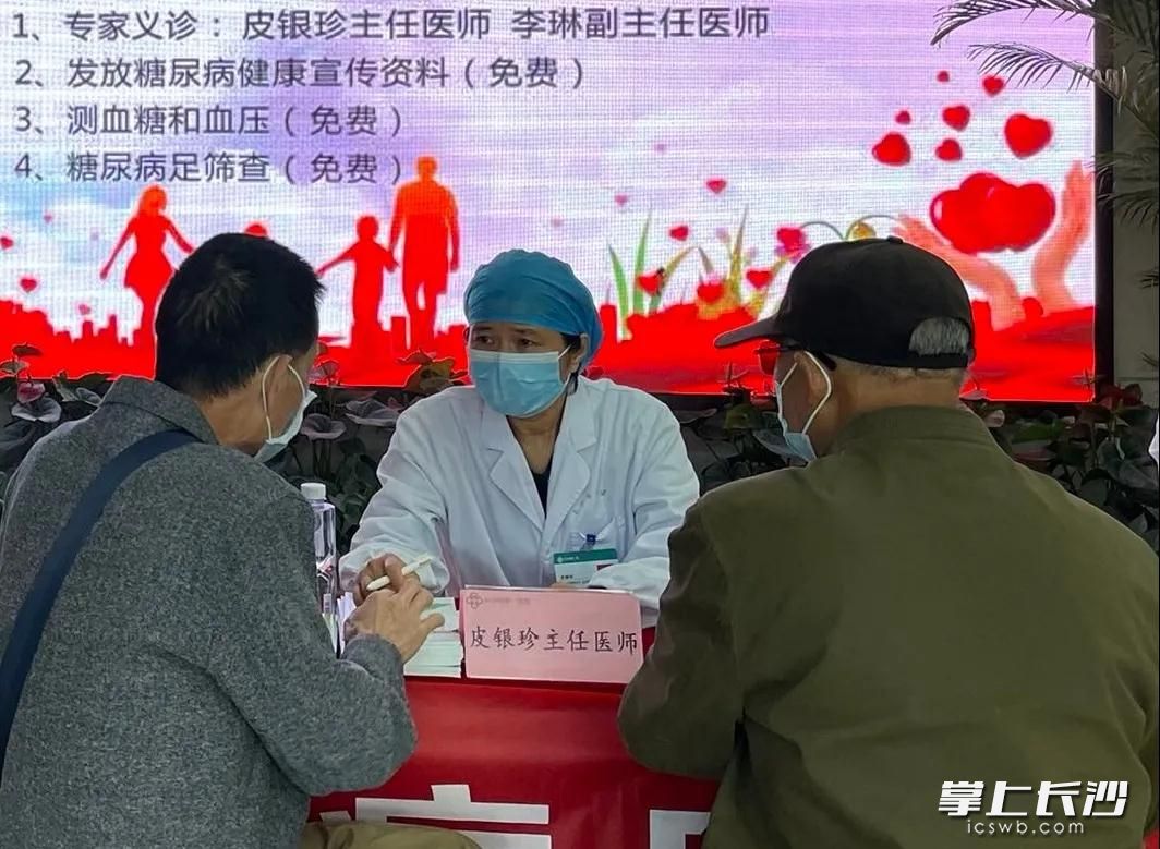 长沙晚报掌上长沙11月13日讯(通讯员 于彬)11月12日,在第14个“联合国糖尿病日”来临之际,长沙市第一医院内科一党支部党员志愿者联合内分泌代谢科专家,在医院门诊大厅一楼开展了“联合国糖尿病日”义诊活动。