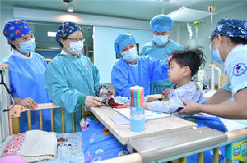 6月17日,6岁9个月的芊芊因患胆道闭锁,紧急转入湖南省儿童医院。由于肝硬化引起食道胃底静脉曲张、脾功能亢进,消化道大量出血,生命危在旦夕。7月1日,芊芊在医院进行了亲属活体肝脏移植手术。手术团队经过近12小时的努力,将妈妈捐出的约占自身肝脏20%的260克左肝外叶顺利移植到芊芊体内,替换芊芊已严重硬化病变的肝脏。该手术也是湖南省儿童医院在获得肝肾移植双资质、陈肇隆院士专家工作站启动后的第一例活体肝脏移植手术。
