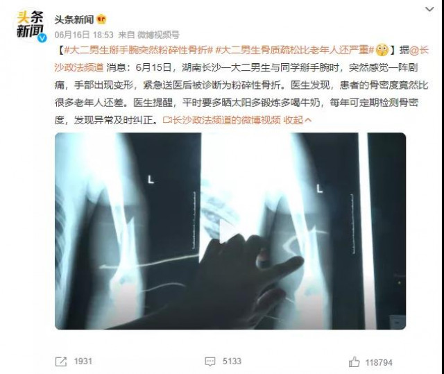 “骨质疏松并非老年人的专利,它的发病年龄正在发年轻化,且覆盖人群越来越广,像张女士这样年纪轻轻的骨质疏松患者不在少数。”陈晶说,这与现代年轻人缺乏健康的生活方式及不良的饮食习惯有关。现代的年轻人特别是女性,普遍喜欢待在室内,日晒时间少,经常饮用奶茶、咖啡等含咖啡因等饮料,故骨质疏松呈现年轻化的趋势。