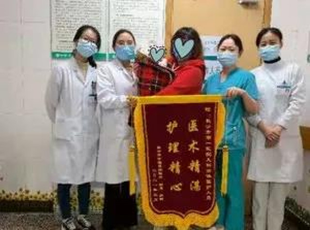 经系统治疗与精心护理,患儿右小腿皮肤缺损完全愈合,体重增长至2.58公斤,生命体征平稳,发育状况良好。出院前,宝宝家属向医护人员赠送了锦旗,表达感谢之情。