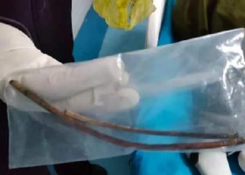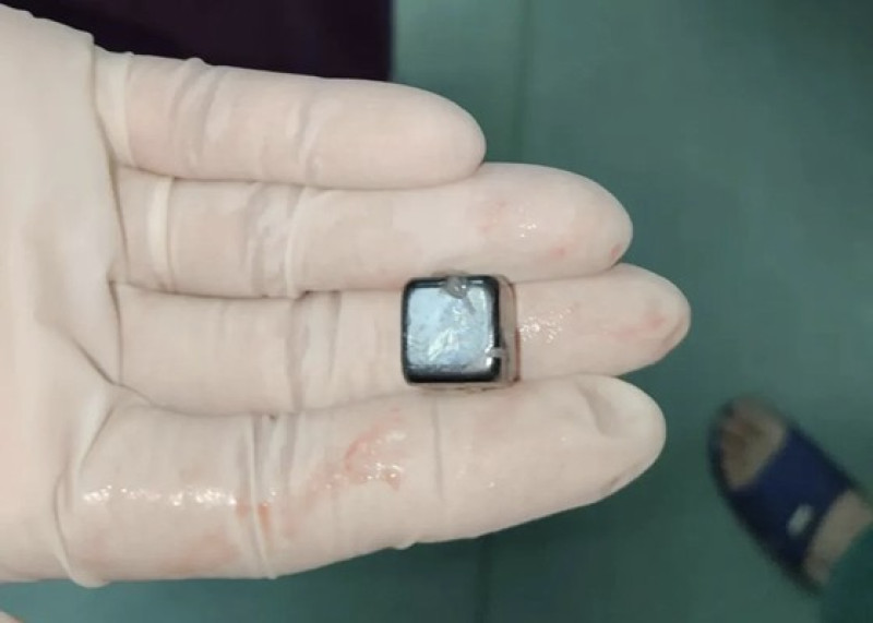 医护团队紧急为其施行腹腔镜下探查手术。术中,精准定位并成功取出一枚长约2厘米、两端尖锐的枣核,并对穿孔的肠壁进行了精细修补,及时挽救了患者的生命。