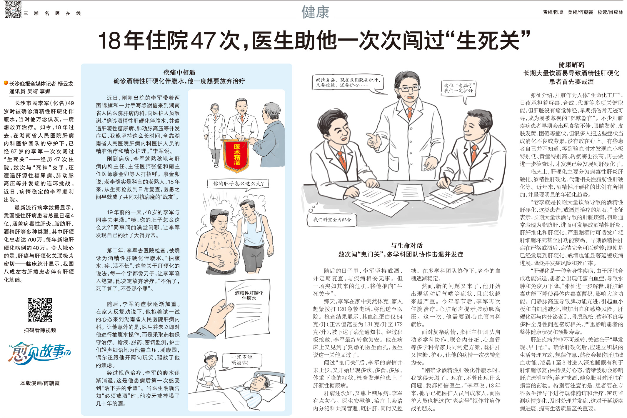 “刚确诊酒精性肝硬化伴腹水时,我觉得天塌了。现在,不管出现什么问题,我都相信医生。”李军说,18年来,他早已把医护人员当成家人,而医护人员也把这位“老病号”视作并肩作战的朋友。