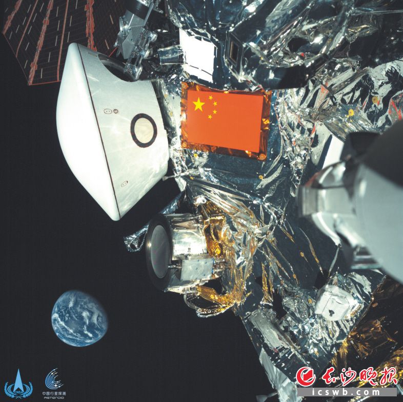 此次发布的天问二号与地球合影图像由安装在探测器机械臂上的监视相机拍摄,鲜艳的五星红旗、白色的返回舱和远处蓝色的地球构成了一幅令人无限遐想的美妙画面。