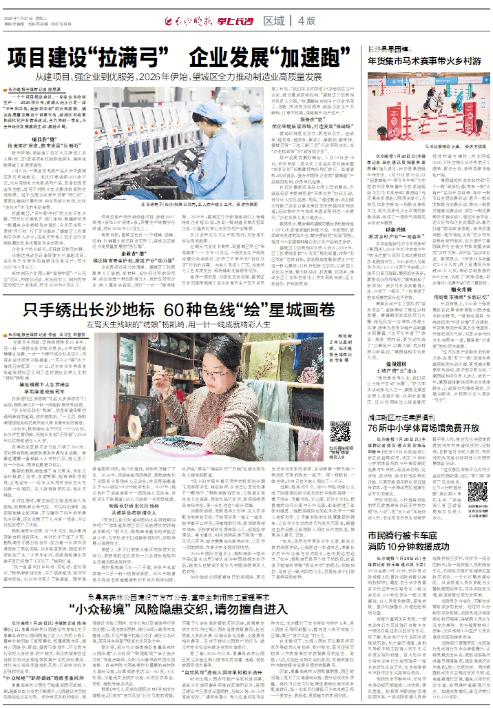 值得一提的是,为强化安全监管,望城区已全面摸排规模工业企业春节生产及节后开复工计划。“我们将实时跟进26家连续性生产企业,建立重点联络机制。”望城区工信局相关负责人介绍,“协调解决连续生产企业的用工、用能、物流等实际困难,确保企业生产不断档、订单不延误,保障春节稳产达产。”