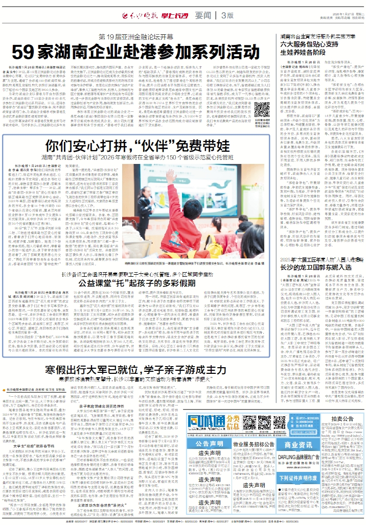 长沙晚报1月26日讯(全媒体记者 傅容容)为降低生育养育成本、减轻家庭照护负担,湖南省近日出台《湖南省生育友好服务包实施方案》(以下简称《方案》),推出覆盖孕育全周期、儿童青少年成长全过程的6个服务包,旨在整合资源,构建覆盖全周期的生育友好服务体系,切实提升群众获得感、幸福感、安全感。